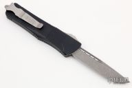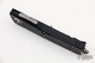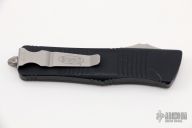 This Troodon OTF Automatic from Microtech features an Apocalyptic finished single edge blade with fuller. The handle is comprised of black aluminum with a bead blasted stainless steel thumb slide, tip down clip and glass breaker. Dated 08/2019 with a S/N of 4796. Includes original box and papers. Has some scuffs, otherwise excellent condition.
