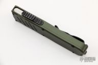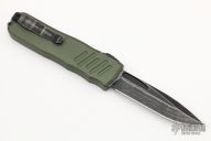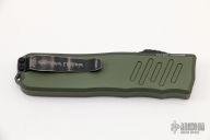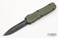 This Recon-035 by Guardian Tactical features a dark washed drop point blade. The handle has a green aluminum frame with black hardware and a black stainless steel pocket clip. Comes with original box and papers. Excellent condition.