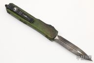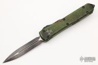 This Ultratech OTF automatic by Microtech features a D/E black blade with a standard edge. Aluminum contoured frame with black hardware and tip down stainless steel clip. Dated 10/2021 and s/n 124. Includes original box and papers. Excellent condition.