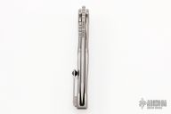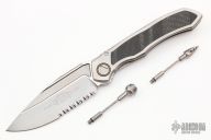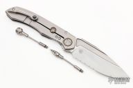 6AL-4V Titanium Handle, Carbon Fiber Inlay, Single Edge Drop Point or Tanto Blade, Blue or Bronzed Pivot Collar and Overtravel Stop, 32 Silicon Nitride Ball Race Bearing System, Proprietary Screws, Interchangeable Lanyards, Pocket Clip, Set of Bits