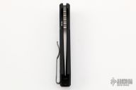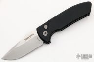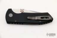 The Protech Knives SBR (Short Bladed Rockeye) is a utilitarian, compact, every-day-carry version of the Les George iconic Rockeye model, retaining the classic design in a smaller package. The SBR has the same American innovations as the Rockeye, featuring modern materials, high tech manufacturing, advanced coil spring mechanism, and quality American production. This version of the SBR has a two-tone, stonewashed/satin finished S35VN stainless plain edge blade, black anodized aluminum handles and bead blasted hardware. PR2 #531. Has a couple very light scuffs, otherwise excellent condition.