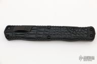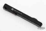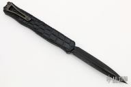 This Cleric II OTF by Heretic Knives features a hand ground DLC Vegas Forge Reptilian Damascus double edged  blade. The handle has a black aluminum frame with crocodile inlays, DLC titanium tip down clip. S/N may differ from picture. Comes with original box, zippered case and COA dated 08/2022. New from maker.