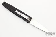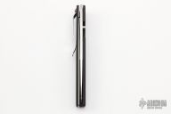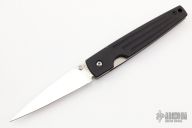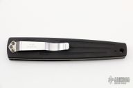 Boguszewski design folder by Benchmade with satin finished blade, single thumbstud. Black coated aluminum handle with linerlock. Tip down carry black stainless steel clip. Has some light scuffs/scratches, otherwise excellent condition. Comes with a Benchmade Box.