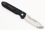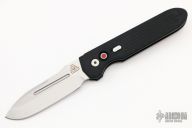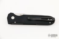 This Invictus by Pro-Tech is a Prometheus Design Werx design, it features a tumbled blade with satin finished flats and a notched thumbrest.  The handle has a black aluminum frame with a black stainless steel tip up clip, lanyard hole at the butt. Push button with red G-10 inlay and a safety.  Comes with original box and papers. Excellent condition.