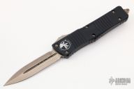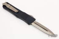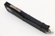 This Combat Troodon OTF automatic features a bronze stonewash blade with a standard edges. Black aluminum handle with a tip down blasted stainless steel clip. Glass breaker. Serial number 27293 and dated 02/2020. Comes with original box and papers. Excellent Condition.  Comes with a custom kydex sheath.