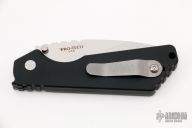 This Pro-Strider PT by Pro-Tech and Strider Knives features a stonewashed 154CM blade with a notched thumbrest. The handle has a gray g10 and black aluminum frame with stonewashed stainless steel tip up clip. Comes with original box and papers. Excellent condition.