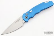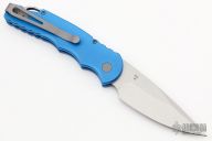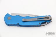 This TR-5 by Pro-Tech Knives features a stonewashed spear point blade. The handle has a blue aluminum handle with stainless steel backspacer with lanyard hole, tip up blade stainless steel clip. Excellent condition.