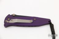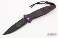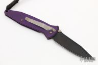 This M-Socom has a black blade with dual thumbstuds. The handle is composed of purple aluminum with non-slip inserts. Dated 12/98. Tip down blasted stainless steel clip. Has some scuffs, otherwise excellent condition.