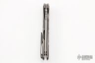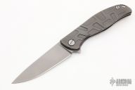 This Model 95 framelock flipper from Shirogorov has a flat ground and tumbled blade with a milled and tumbled titanium frame with matching tip up clip. Excellent lockup, crisp detent, and perfect seating. Includes a padded zipper case.  Excellent Condition.