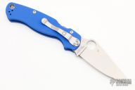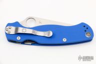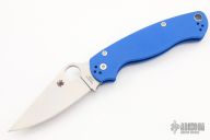 This Paramilitary 2 from Spyderco has a satin finished clip point blade with thumb hole and notched thumb rest. Handle is blue G-10 with stainless steel liners and stainless steel 4-way reversible clip. Comes with original box and paperwork. Excellent condition.