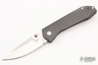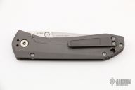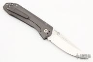 This Ti Monolock by Benchmade features a tumbled drop point blade with single thumbstud. The handle is bead blasted titanium with tip down clip and stainless steel barrel spacers. Nice detent, lockup and blade seating. Has ball bearings. Comes with soft pouch. Has a couple light scuffs, otherwise excellent condition.