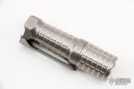 This flash light by Brian Fellthoelter features a titanium frame with a frag grip and a matching pocket clip. " F. the Dark" are inscribed inside the box that comes with this light. This light features a CWF Dragon V3 Driver with a blue secondary amber. Excellent condition.
