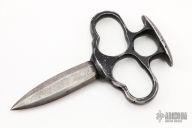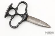 During WWI the firm of Robbins Dudley filled the “Tommy’s” need for easy to use in close quarters fighting knives. They made at least 10 different models. Designed for easy manufacture these knives were all private purchase by individual soldiers. This push dagger was designed for stabbing from behind with a natural movement (great for unskilled knife fighters) with the high carbon steel blade. Has some light oxidation and pitting, otherwise good condition for its age. This one does not have any markings on it.
