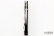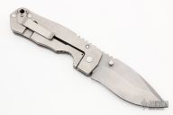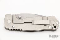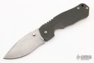 This Satu Framelock from Grayman knives features a stonewashed spear point recurve blade with dual thumbstuds and notched thumbrest. The handle has a green G-10 scale with tumbled titanium liner and titanium lock-side, black G-10 backspacer, and tip up titanium clip. Excellent condition.
