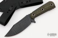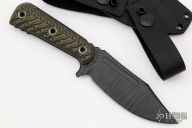 The UCAP (Up Close and Personal) is a mid-sized fixed blade knife that is well suited for everyday carry and a wide array of other uses. The UCAP was created with a defensive purpose in mind, but is also well equipped for various cutting chores, from first responder type situations, outdoor activities, or just about anything else you can throw at it. The handle is slightly shorter to allow easier concealment, but still offering a nice large blade. Think 1911 CCO style, Officer size frame with a Commander length barrel. This particular group are hand textured and finished in Black Elite Cerakote for unique look.