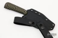 The kydex sheath can be run scout or IWB, and is MOLLE compatible so it can be attached to any pack, plate carrier or similar gear with PALS webbing. The scabbard will work with most of the popular clips and mounts like the Discreet Carry Concepts Clip and UltiClip.