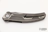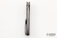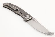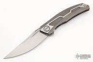 This Quantum Gen2 by Shirogorov features a blasted blade with notched thumbrest and flipper. The handle has a blasted and milled titanium frame, backspacer, tip up titanium clip with hidden screws. Rides on MRBS, nice detent, lockup and blade seating. Comes with original box and COA. Excellent condition.