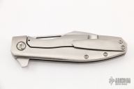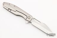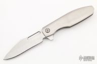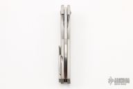 This Crossfade Flipper by BBC Knives features a satin finished drop point blade with thumbhole and flipper. The handle has an orange peel finished titanium frame with matching tip up clip and bronze anodized titanium barrel spacers and a bronzed titanium pivot colar. Features IKBS. Nice detent, lockup and blade seating. Comes with a hard shell case with COA. Light oxidation is visible on the blade otherwise the knife is in Excellent condition.