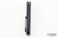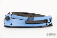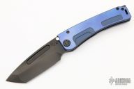 This Marauder from Medford Knife and Tool features a black PVD finished tanto blade with fullers. The handle has an anodized titanium frame over a PVD stainless steel backspacer and titanium tip up clip. Includes original box and hard case. Has black hardware. Excellent Condition.