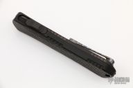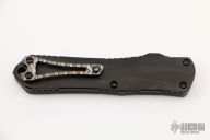 This Manticore E by Heretic Knives features a DLC fully serrated tanto blade. The handle has a carbon fiber and tumbled DLC stainless steel frame with DLC hardware and a tip down flamed titanium clip with ceramic ball inlay. Comes with original box and drawstring bag. S/N 021. Excellent condition.