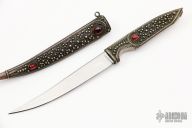 Zaza Revishvili is from Georgia, not the American State of Georgia, but the nation of Georgia. As a youth, Zaza was identified as a promising artist. He was sent to the top schools where he was a top student. While he studied and practiced many forms of art and design, his personal favorites have always been metal sculpture, jewelry, and especially knife making. He emigrated to the US following the collapse of the Soviet Union and today lives in Madison, Wisconsin where he has established his workshop. From there, he makes knives, jewelry, and other art for the royalty and the elite of the world. His knives, swords, and other works are in the finest collections the world over, including the permanent collection of the Kremlin Armory in Moscow.