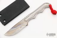 This custom titanium neck knife from Korth/Rick Lala features a satin finished and milled chisel ground blade, .105" blade stock and .780" blade depth. Two-part kydex sheath slides apart for cleaning. Excellent condition.