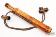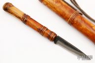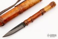 This knife features a drop point blade with a hidden tang construction. .150" Blade Stock. .666" Blade Depth. The handle is constructed of bamboo. Comes with bamboo sheath. Very sharp edge. Excellent Condition.