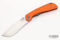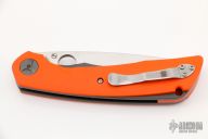 The Nati Amor designed Spyderco Subvert is a large folding knife revealed at Spyderco's 2018 Amsterdam Meet. This folder sports a clean, balanced aesthetic based on Nati's handmade Sabotage custom. It features orange G-10 scales over thick bead blasted titanium liners. Its blade has a satin finish, high flat grind, and a generously bellied edge. Add a unique Nati Amor design to your collection today! Features: A heavy duty titanium liner lock offers dependable blade lock up. Stainless steel clip for tip-up pocket carry. 3D textured G-10 handle scales provide a secure and comfortable grip. Comes with original box, papers. Excellent condition.