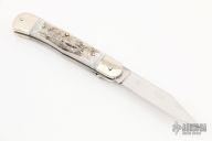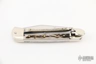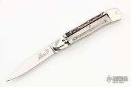 This leverlock auto by Hubertus features a mirror polished clip point blade, nickel silver double bolsters, stag scales, nickel silver liners and brass pins. Opens with a nice snap. Very fast opening. Comes with original box. New condition.