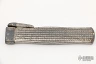 Gravity knife with metal handle. Has some scratches and wear, otherwise fair condition. Good function.