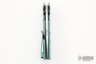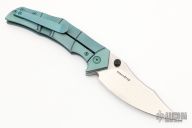 This Thresher by Massdrop is a Gavko design. It features a satin finished blade with dual thumbstuds. The handle has an anodized and tumbled titanium frame with matching backspacer and tip up clip. Comes with original box and zippered case. Has a few light scuffs, otherwise excellent condition.