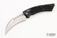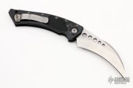 This Hawk Auto by Microtech Knives features a stonewashed hawkbill blade. The handle has a black aluminum frame with blasted stainless steel hardware and tip up clip. Dated 02/2020and s/n 738. Includes the original box and papers. Excellent Condition.