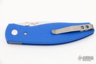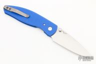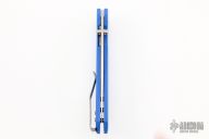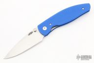 This Atom Linerlock by Three Rivers features a stonewashed blade with dual thumbstuds. The handle has blue G-10 scales, titanium liners and tip up reversible clip. Nice detent, lockup and blade seating. Comes with original knife tube.  Excellent condition.