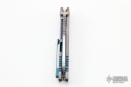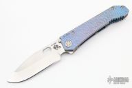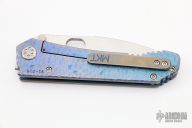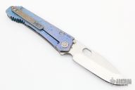 This 187 DPT Drop Point by Medford Knife and Tool features a stonewashed drop point blade with notched thumbrest and thumbhole. The handle has a sculpted and anodized titanium frame and clip. Nice blade seating, detent and lockup.  Excellent condition.