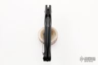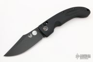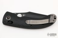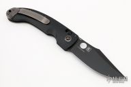 This 741 LUM Onslaught Axis Lock Folder has a black 154-CM clip point blade with thumb hole. Handle is black G10 over stainless steel liners, black fiber backspacer, stonewashed stainless steel tip up clip, and lanyard hole. Excellent condition. Comes with drawstring pouch and original box and papers.