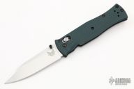 This Model 531-1501 from Benchmade features a tumble finished spear point blade with swedge and dual thumb studs. The handle is comprised of a milled g10 frame, stainless steel reversible tip up clip. Lanyard hole in pommel. Includes original box, papers and drawstring pouch. Excellent condition.