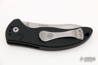 This EX-A04 Automatic model has a stonewash finish blade with and a black G-10 handle, tip down black stainless steel clip. Comes with original box, papers, and zipper pouch. Excellent condition.
