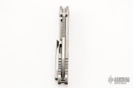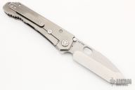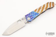 This 187 DPT Drop Point by Medford Knife and Tool features a stonewashed drop point blade with notched thumbrest and thumbhole. The handle has a stonewashed titanium frame and clip with American Flag laser engraving. Nice blade seating, detent and lockup. Comes with original box, hard case and papers. Excellent condition.