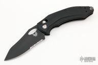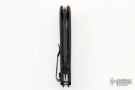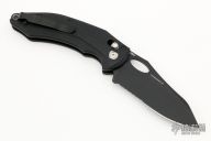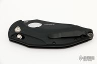 This 808SBK Loco by Benchmade Knives features a black blade with thumbhole. The handle has black G-10 scales with black stainless steel liners, stainless steel backspacers, tip up black stainless clip, lanyard hole at the butt. Includes original box, drawstring pouch, and papers. Excellent condition.