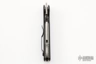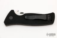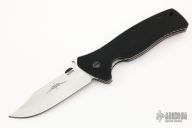 This Investment Arms Prototype by Emerson Knives features a satin finished clip point blade with thumbdisc and wave feature. The handle has black G-10 scales, titanium liners, black G-10 backspacer, and a tip up black stainless steel clip. Nice detent lockup and blade seating. Marked "Prototype" under thumbdisc. Excellent condition. Comes with original box.