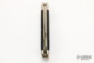 This slipjoint from Great Eastern Cutlery features two mirror finished blades with nail nicks. The handle has fluted nickel silver bolsters, Gabon Ebony covers with nickel silver escutcheon over brass liners and steel springs. Has half-stops. Includes original packaging. Has a couple light scratches, otherwise excellent condition.