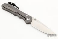 This Large Inkosi from Chris Reeve and Wilson Combat features a tumble finish blade with dual thumbstuds and a bead blasted titanium frame. Bead blast titanium clip, tip up carry. Comes with original box and papers dated February 18, 2021. Excellent condition.