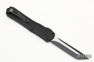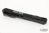 This Manticore-X by Heretic Knives features a battleworn black tanto blade with notched thumbrest. The handle has a black aluminum frame with battleworn black stainless steel hardware, tip down clip, and thumbslide. Comes with original box and papers. Excellent condition. S/N 02536