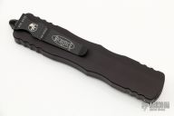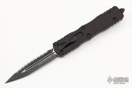 This Dirac Delta OTF automatic by Microtech features a D/E DLC finished blade with a fully serrated edge. The handle is DLC aluminum with a stainless steel tip down clip. Serial number 5475 and dated 02/2022. Comes with original box and papers. Excellent Condition.
