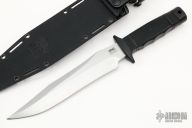 The SOG Tigershark (SK-5) was the 5th model that SOG produced. It is one of the first few iconic models that SOG rolled out - which means that it forms the basis of the SOG company history. Just imagine - 9 inches of shiny sharpened SK-5 carbon steel... almost like a mini-sword! This knife is especially hard to come by, and it pops up rarely for sale on the web. This model is the base for the current Tigershark models, like the Tigershark Elite. Many have commented that this SOG knife makes a great camp tool (especially for chopping) and makes very quick work of any wood, largely due to its nice hefty blade that has great weight balance and feel. People who bought this knife certainly did use it well, which explains why it is difficult to find a Mint In Box (MIB) piece.