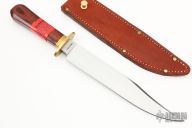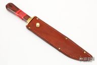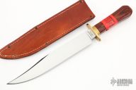 This Laredo Bowie by Cold Steel features a satin finished blade with sharpened top edge, .290" blade stock and 1.503" blade depth, hidden tang construction. The handle has a brass guard and dymondwood grip. Comes with brown leather sheath and original box. Excellent condition.