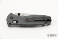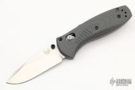 This 585-2 Mini-Barrage from Benchmade features a stumbled drop point blade with swedge and dual thumbstuds. The handle is comprised gray G-10 scales over stainless steel liners. This knife also features the AXIS lock mechanism and sliding safety on spine. Includes original box and paperwork. Excellent Condition.