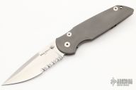 The custom TR-3 Integrity folders are built in very small batches from the highest possible quality materials. Solid titanium frames, custom hardware and thumb studs, the fit and finish is superb! Smooth one hand opening and the solid locking of the .125" titanium frame, even the pocket clips are custom made titanium. Has some scuffs, otherwise excellent condition. Comes with a zippered case.