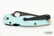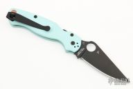 In this special edition of the Paramilitary 2, it comes with teal G10 handles instead of the normal FRN scales. G10 has great weather-resistant properties which give the handle a sure grip in any environment. The blade of the knife is DLC coated and the steel is upgraded from the normal S30V stainless steel to S90V.