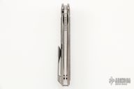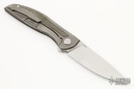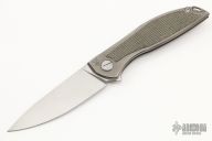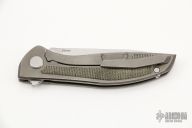 This Neon NL by Shirogorov features tumbled blade with notched thumbrest and flipper. The handle has a tumbled titanium frame with green canvas micarta inlays. Comes with box and papers. Rides on MRBS. Excellent condition.